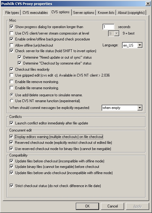 Can you have a look to our parameters ? Can it be because we configure the server the server for atomic checkout or because all files have the option kvv ?