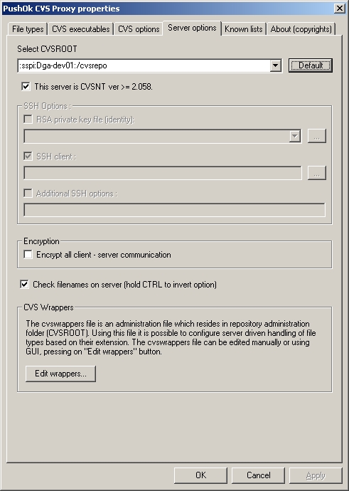 Server version is : CVSNT 2.5.03 (Scorpio) Build 2382 Client : Same
