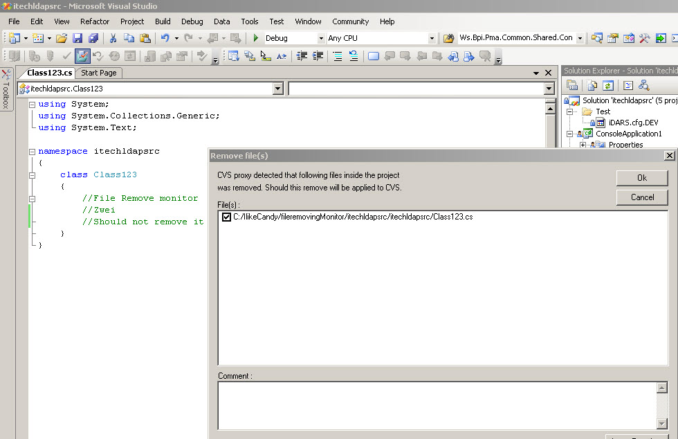 file. I enter a simple comment in the file and check it back in. When I