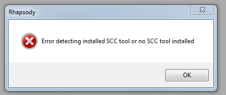 IBM Rational Rhapsody reports that the SCC tool is not installed.