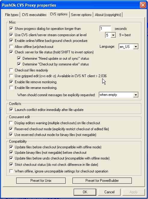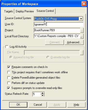 souce control properties  cvs options