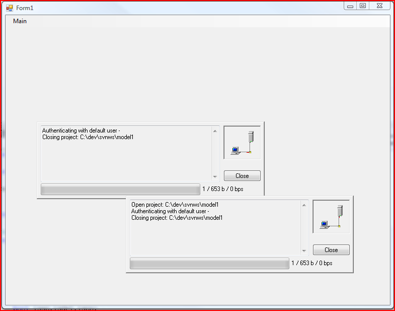 I have tried to extract our SCC integration code into a separate smaller app to isolate the problem. I can't really get the problem to happen in the debug app, but I do see some strange hanging "windows" from SVNSCC. See the attached screenshot.