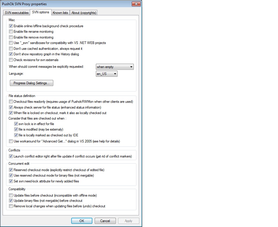PushOK is synchronize to SVN repo and work correctly (Get latest version, checkout,... ).