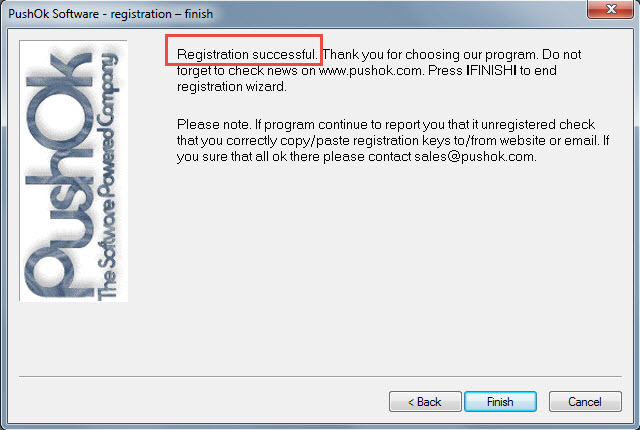 The registration is successful But the tool reports "Your copy of unregisterred.