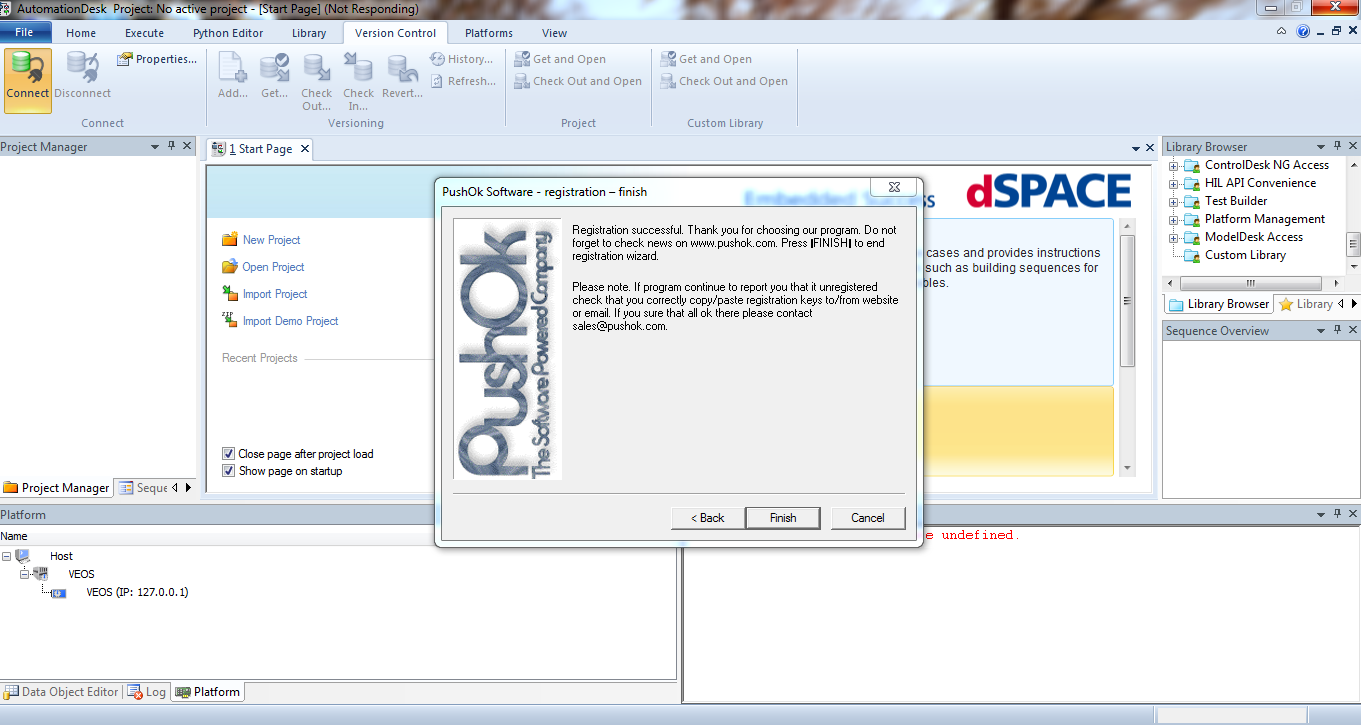 After I registered successfully, and press finish button. It would remind