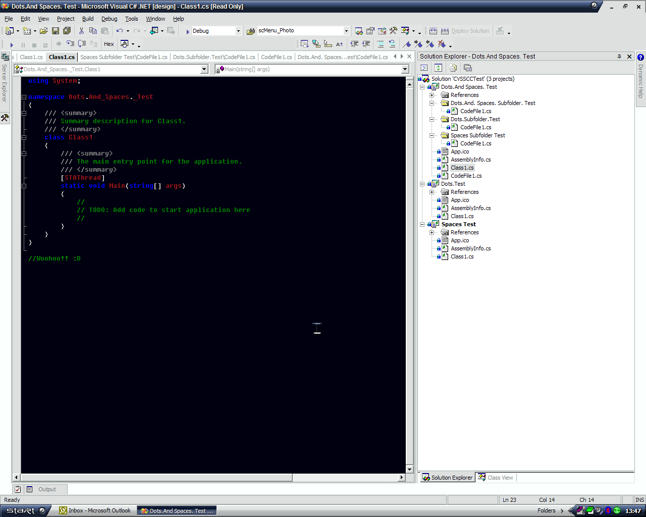 It seems CVSSCC has a problem adding soltions, projects and project sub-folders whose names contain dots and/or spaces.