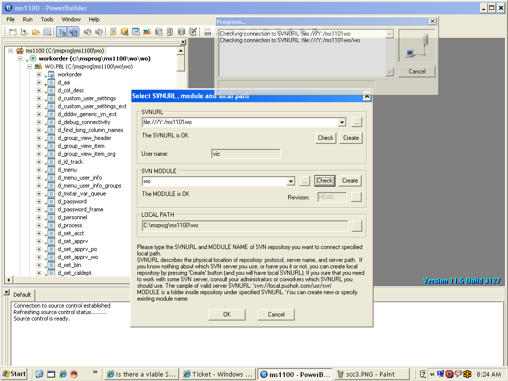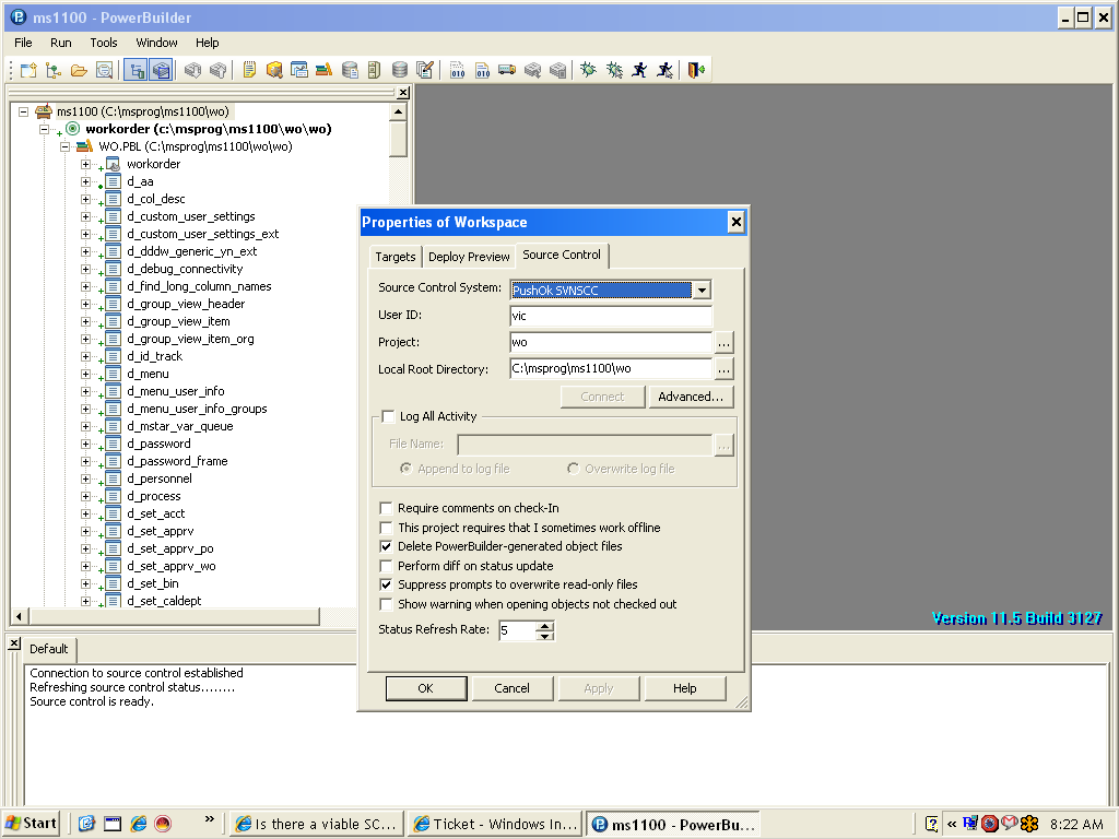 Using PowerBuilder 11.5 and PushOK SVNSCC Plugin v 1.6.