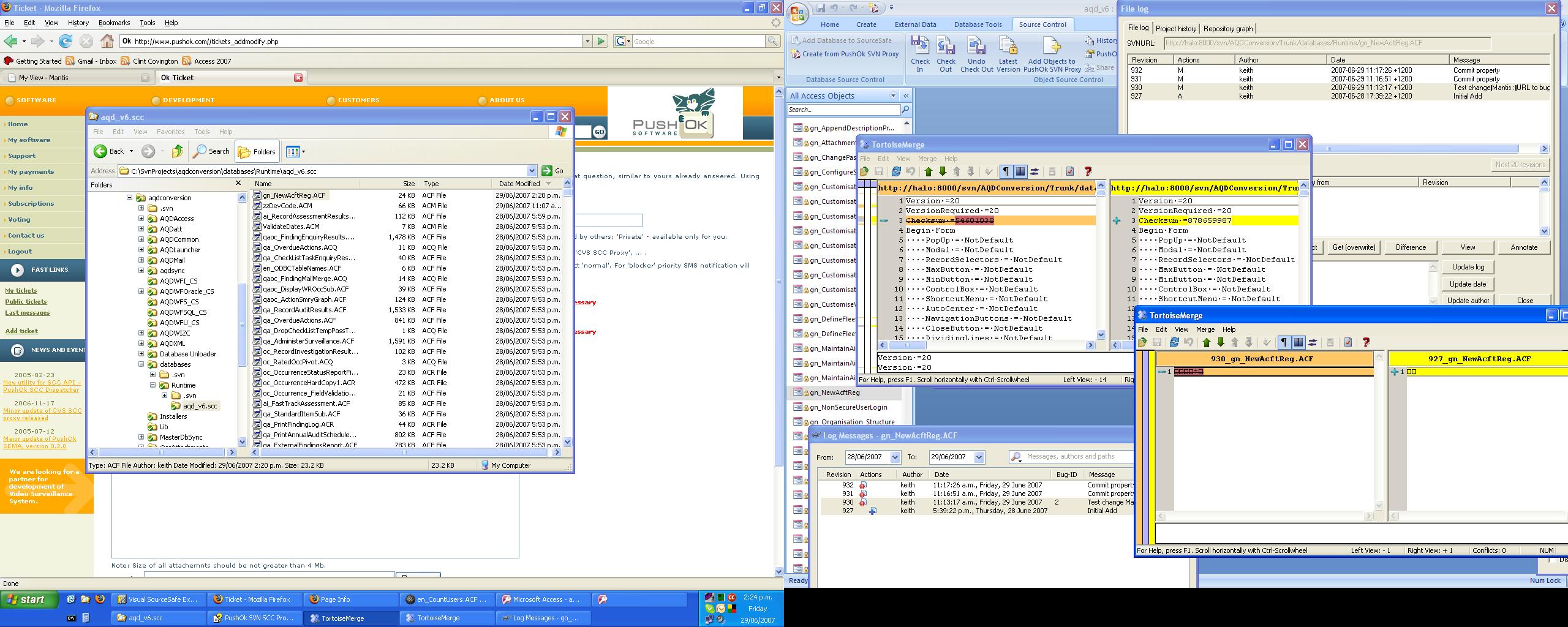 have made to a form in Microsoft Access 2007. The diff tool used is